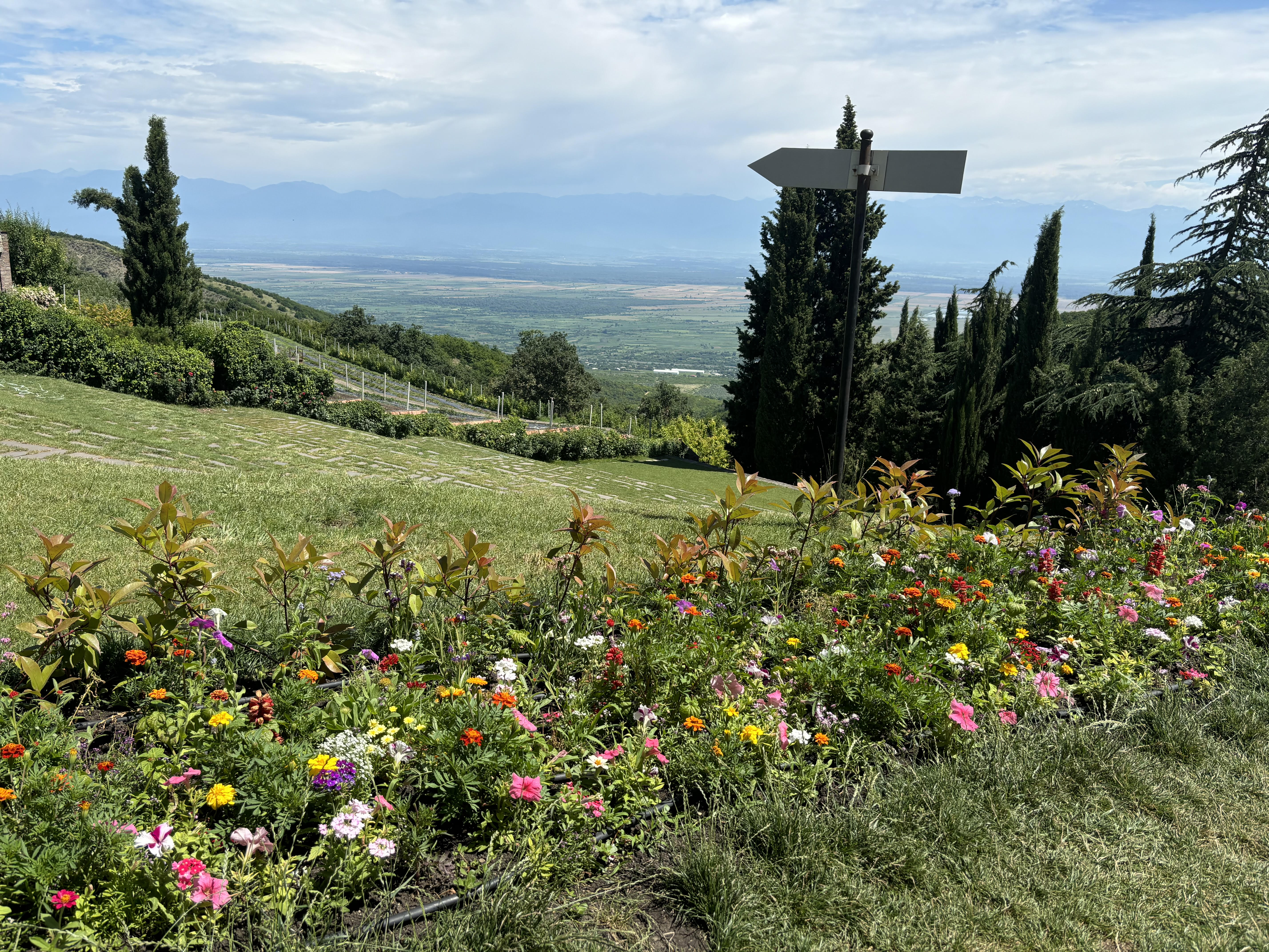 The Kakheti region was where we first started our trip. The Kakheti region occupies the southeast area of Georgia. It is a very mountainous region with many people growing grapes for whine. While there are many mountains there are also valleys that are very flat, so there is a lot of variety in the landscape. The trees seemed to be similar to what I am used to in Connecticut. There are large rivers going through the city Tbilisi and some large lakes/resevoirs as well. The city Sighnaghi in the Kakheti Region is high on a cliffside overlooking the Alazani Valley. It was cooler in the higher mountains, though it could get hot when near a lake or resevoir, it was mostly a dry heat lacking humidity unless we were near the water.