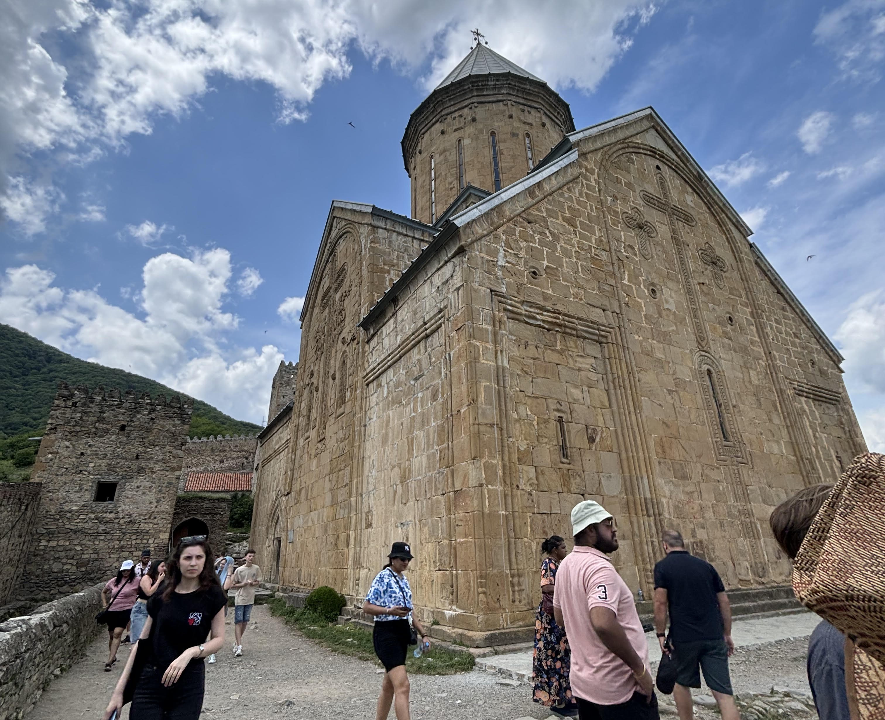 Ananuri Fortress was a fortress on the side of the Zhinvali Reservoir. While it was a fortress used for the military it showed just how much religion means to Georgians because of its church in the center of the fortress. I believe this implies that the military believed as long as they kept god near them they would be safe.