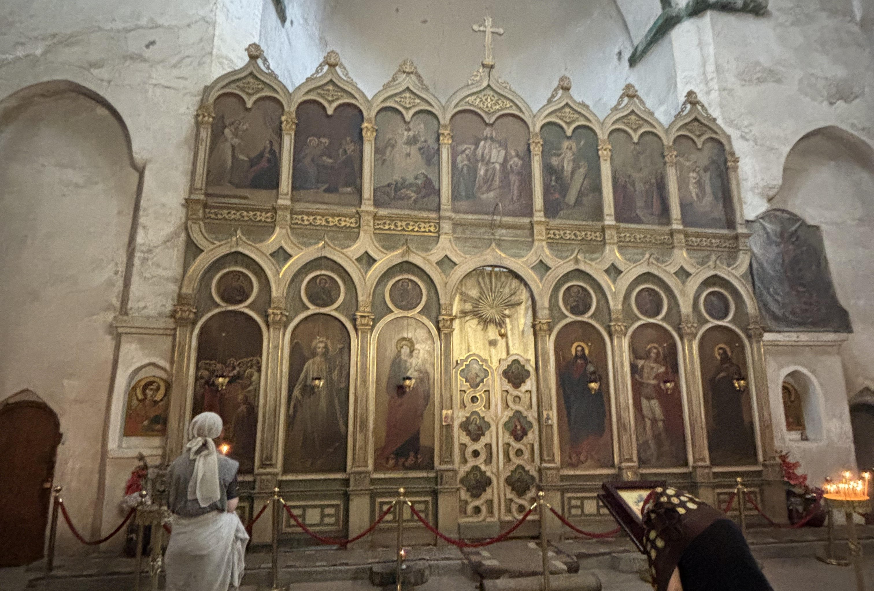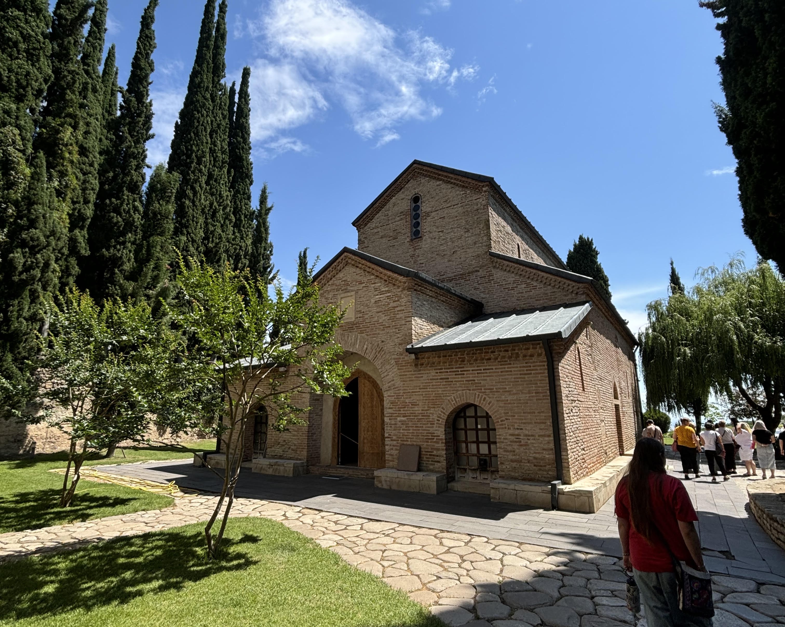 The Bobde Monastery was located on a cliffside in a park filled with nature. There were many good places to look out upon the Alazani Valley where you could see for many miles. The monastery was the location where Saint Nino was buried. There was a church and a monastery in that park, the monastery was much older and was the location of where Saint Nino rested, while there was a much newer church that was closer to the cliffside overlooking the valley.